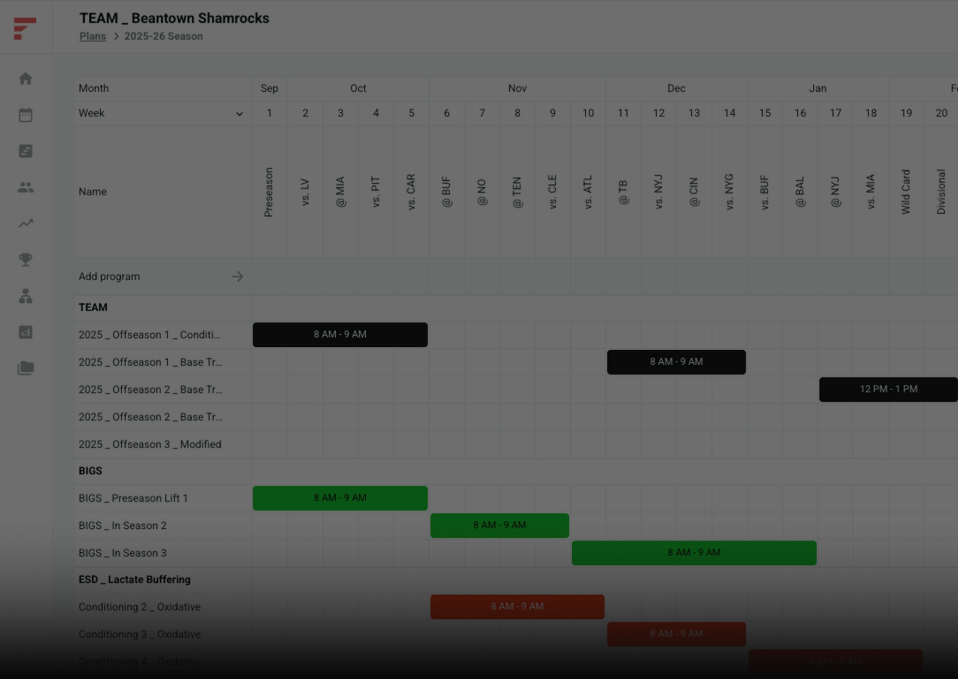 FYTT gives you the tools to architect your annual plan, structure training phases, and coordinate periodization across sports — so your athletes hit their peak when championships arrive, not two weeks after.